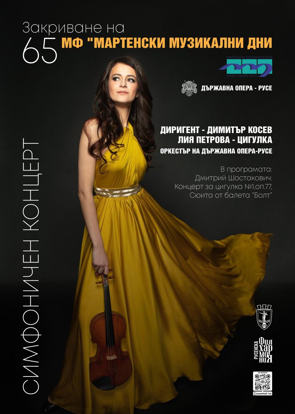 По инициатива на Държавна опера-Русе, МФ „Мартенски музикални дни“ заедно с Русенската филхармония (Оркестър на Държавна опера-Русе) отбелязва 120-годишнината от рождението на Дмитрий Шостакович с две негови забележителни произведения – балетната сюита „Болт“ и Първият му цигулков концерт.