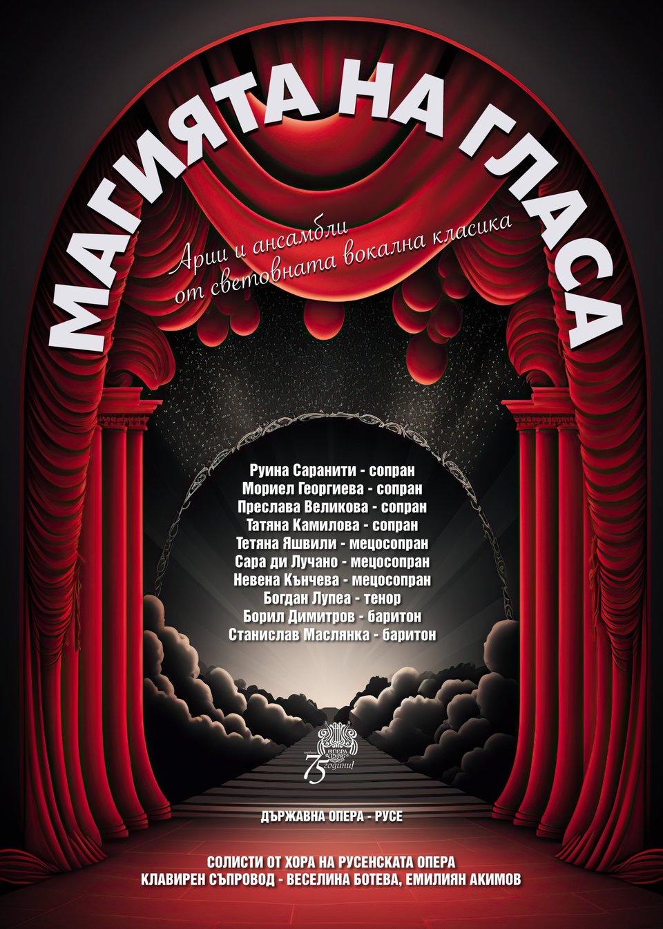 „Магията на гласа“ обещава изтънчено музикално преживяване, което ще разкрие богатството, емоционалната дълбочина и артистичния блясък на артистите от Хора на Русенската опера в уютната атмосфера на зала „Опера-фоайе“.